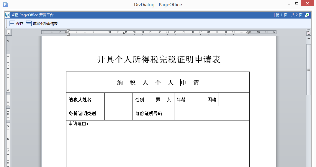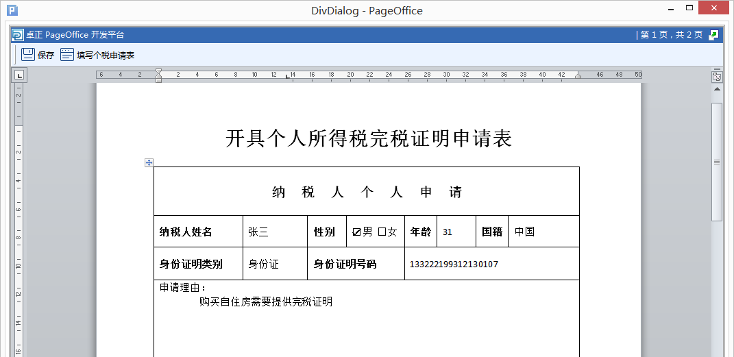 采用前端框架内置对话框填写文书和表格的方案,不仅解决了数据收集与处理的难题,极大地提升了用户操作的便捷性和效率,而且完全保留了传统Word填写最直观易懂的优点,完美解决了用户在线填写文书和表格的问题。下面是一个简单的示例,演示了如何使用前端框架内置对话框填写一个“完税证明申请表”的效果。