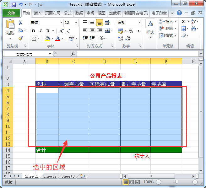 - 在本地磁盘上打开一个Excel文件模板,选中需要填充数据的单元格区域,如B4:F13,如下图所示;