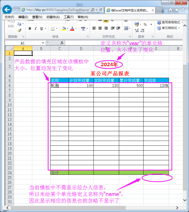在PageOffice开发平台下,为了更好的在Excel模板中动态的、灵活的填充数据,专门开发了相应的程序接口,提供了完美解决上述问题的方法——openCellByDefinedName()和openTableByDefinedName()。在代码实现过程中,通过灵活的运用这两个方法,即可完美的实现在不修改代码的情况下,满足最终用户自定义修改Excel模板的需求。